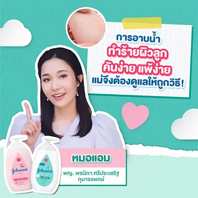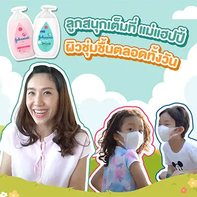 คุณแม่ปาล์ม จากเพจคุณแม่เลอค่า ก็เป็นคุณแม่อีกคนที่ชอบพาลูก ๆ ทั้งเฮียธัมดีและเจ้คิดดี ออกไปเล่นสนุกและทำกิจกรรมต่าง ๆ นอกบ้าน จึงต้องใส่ใจเรื่องการดูแลผิวเป็นพิเศษ เพราะหลังอาบน้ำอาจทำให้ผิวลูกแห้งและสูญเสียความชุ่มชื้น แม่ปาล์มจึงบำรุงผิวเฮียธัมดีกับเจ้คิดดี ด้วยการทาจอห์นสัน เบบี้ โลชั่น ทุกครั้งหลังอาบน้ำ