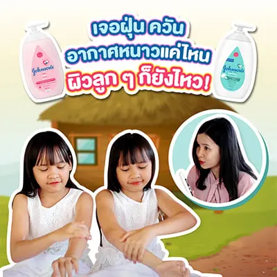 ช่วงอากาศหนาวอาจทำให้ผิวลูกแห้งแตก ลอกเป็นขุย และขาดความชุ่มชื้นได้ อิแม่เลยต้องทาจอห์นสัน เบบี้ โลชั่น ให้อุ๋มกับอิ๋มทุกครั้งหลังอาบน้ำ แม้การอาบน้ำจะทำให้รู้สึกสดชื่นสบายตัว แต่ก็ทำให้ผิวบอบบางของเด็ก ๆ สูญเสียความชุ่มชื้นได้ในเวลาเดียวกัน