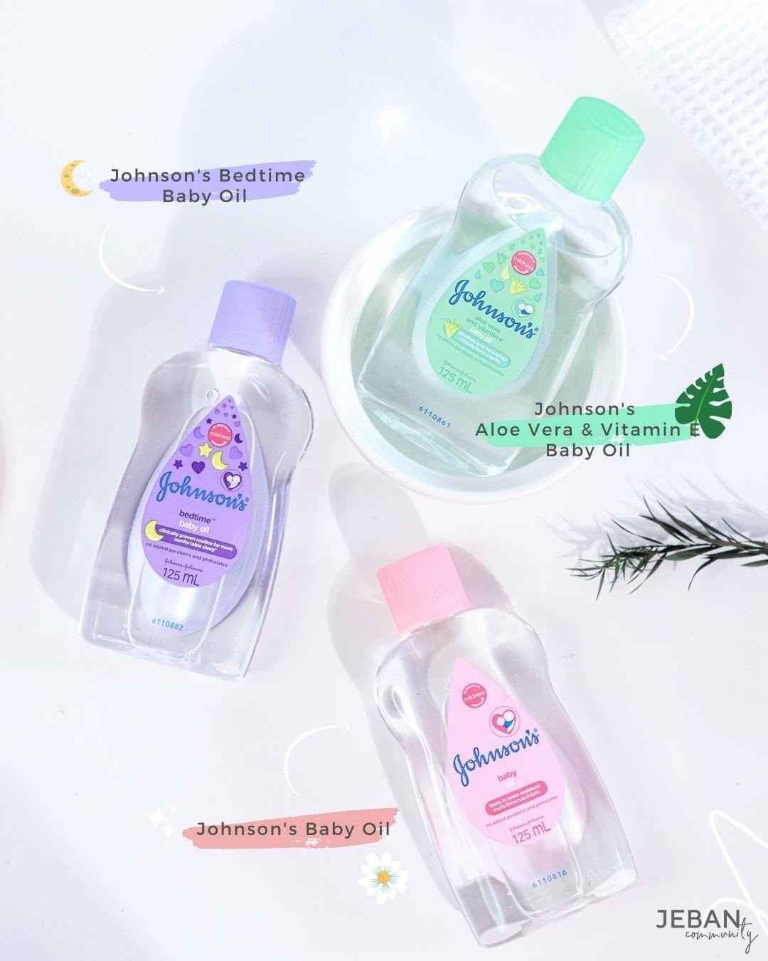 จอห์นสันเบบี้ออยล์สีม่วงv สูตรนี้มีความพิเศษตรงที่มีกลิ่นหอมอโรม่าของดอกลิลลี่และมะลิ ทำให้ผ่อนคลาย นอนหลับสบายขึ้น และช่วยบำรุงผิว เพิ่มความชุ่มชื่น
