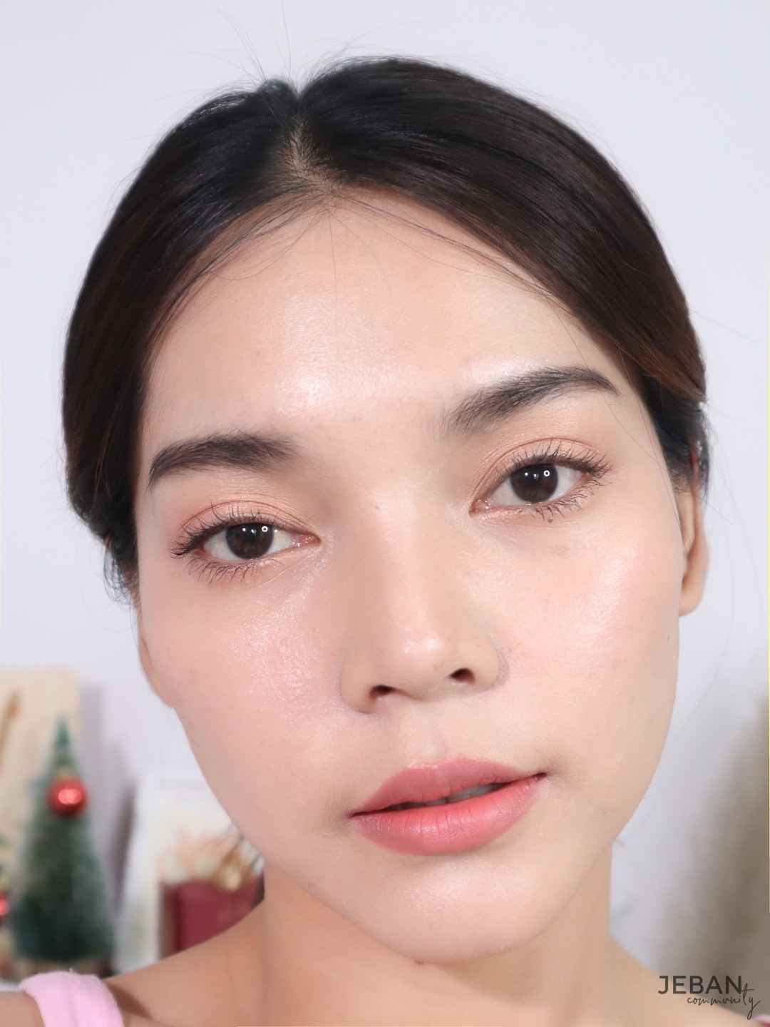 ลงผิวเสร็จแล้ว ก็แต่งตากันได้เลยค่ะ สำหรับลุคที่นัทแต่ง จะเน้นความสดใส ไม่แต่งอะไรเยอะ (เน้นผิวมากกว่า) ใช้อายชาโดว์แค่สีเดียว ลงแก้มบางๆ จบด้วยลิปสติกชมพูอ่อนๆ แต่ยังไม่จบเท่านี้นะ เราจะมาแต่งเติมเพิ่มความเงา ฉ่ำวาวให้ผิวกันอีกหน่อย
